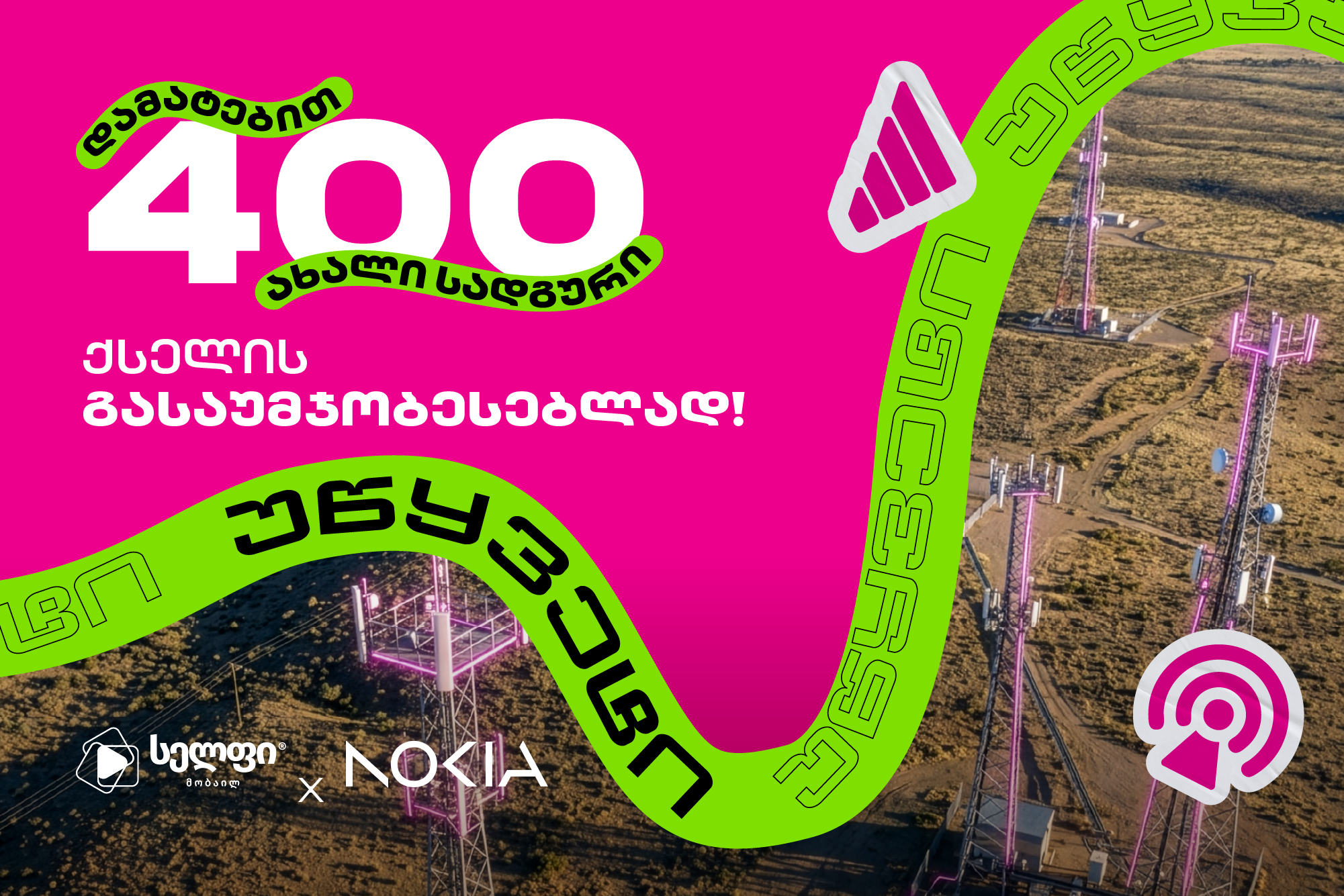 სელფი მობაილი განაგრძობს ქსელის დიდ განახლებასა და განვითარებას. მსოფლიოში წამყვან ტექნოლოგიურ კომპანიასთან Nokia წარმატებული მოლაპარაკების შედეგად, კომპანია ხრდის ქსელს 400 ახალი საბაზო სადგურით, საქართველოს მასშტაბით.