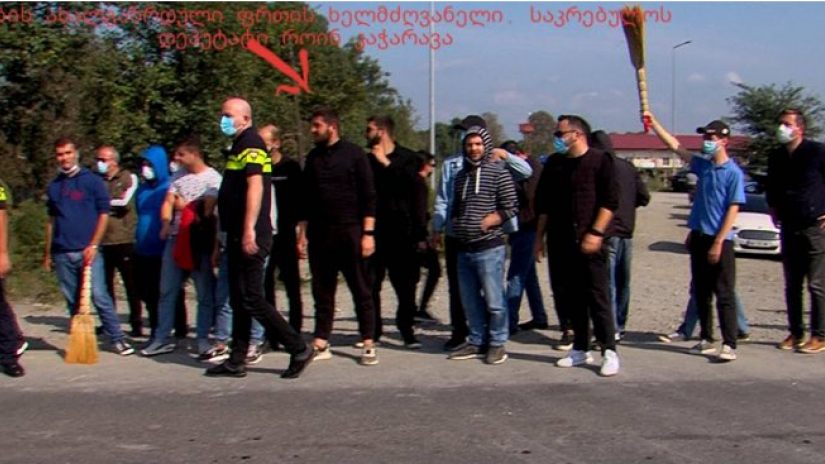 ცოცხით “შეიარაღებული” გზაზე იდგა “ოცნების” ახალგაზრდული ორგანიზაციის ხელმძღვანელი როინ კაჭარავა, თავისი ორგანიზაციის რამდენიმე წარმომადგენლით.