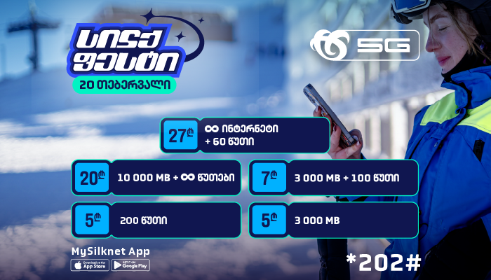 20 თებერვალს, სილქფესტის აქციის ფარგლებში, სილქნეტი მომხმარებლებს თავაზობს პაკეტებს: