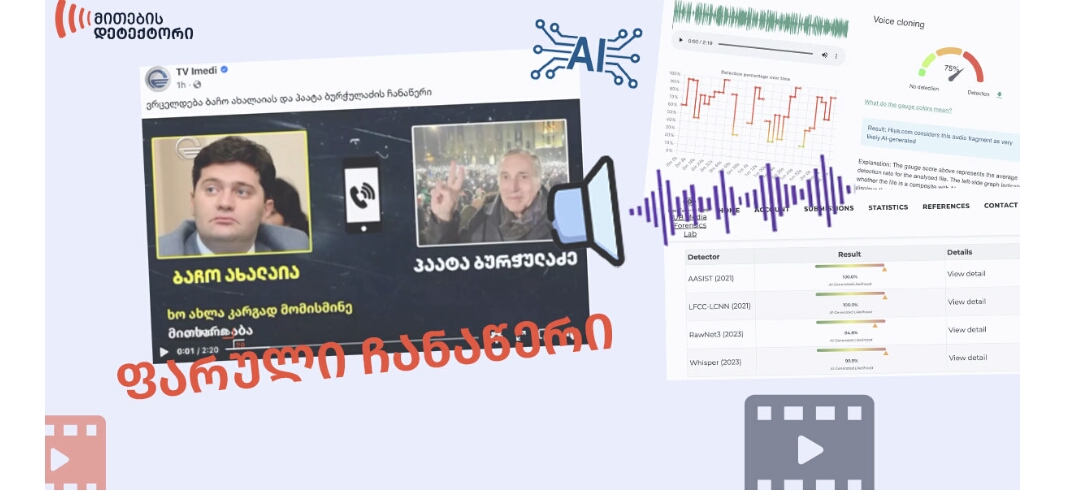 მითების დეტექტორი აქვეყნებს მასალას სათაურით: “რას აჩვენებს AI-ის ამომცნობი ხელსაწყოები ახალაიას და ბურჭულაძის შესახებ გავრცელებულ აუდიოზე?”