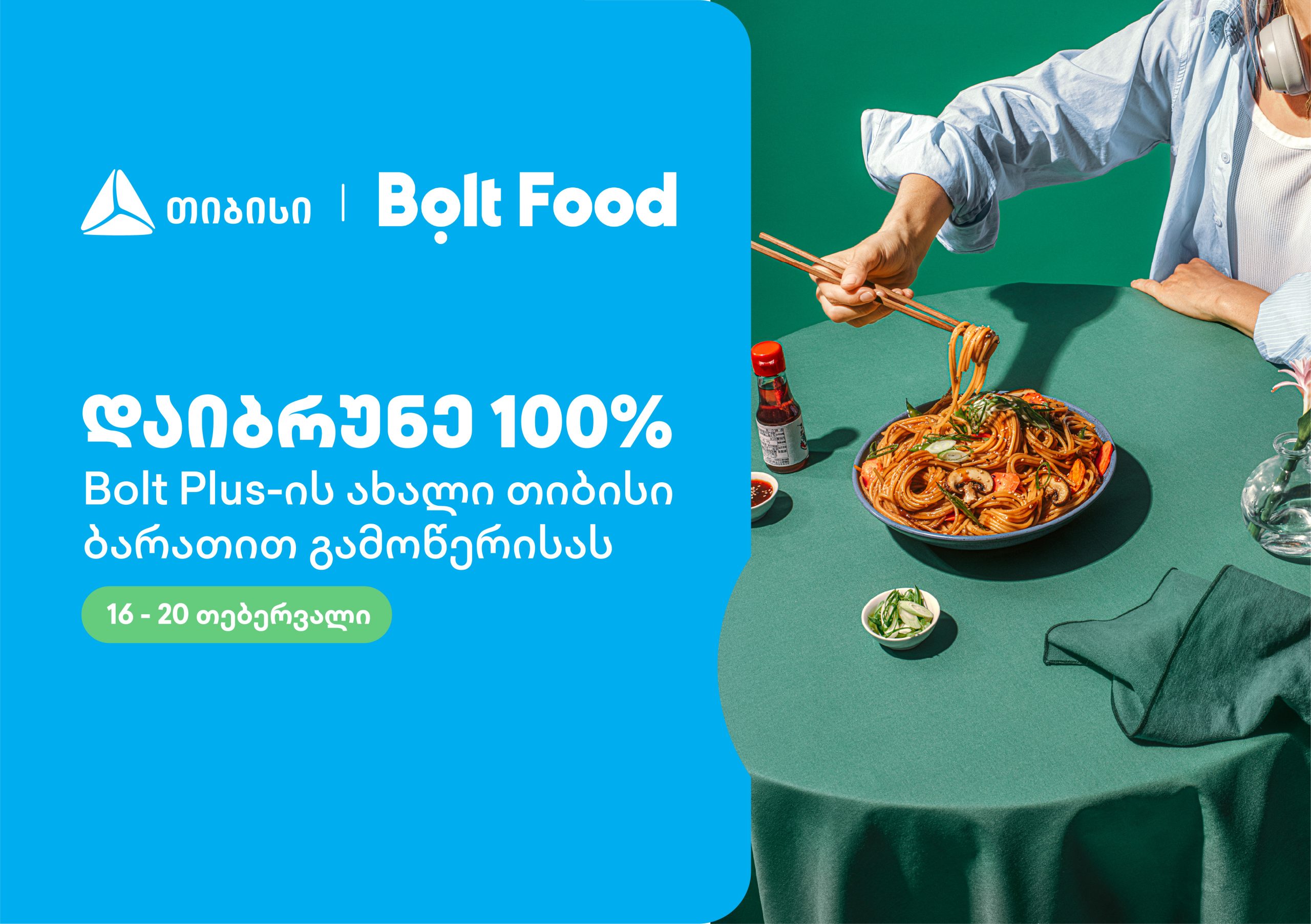 თიბისის  პარტნიორებს ახლახან შეუერთდა Bolt Food, სადაც 16 თებერვლიდან 20 თებერვლის ჩათვლით, განსაკუთრებული შეთავაზება დაგხვდებათ– Bolt Plus წლიური მიტანის სერვისის ახალი თიბისი ბარათით, ახალი თიბისი კონცეპტ ბარათით ან ერთგული საკრედიტო ბარათით შეძენისას, გადახდილი თანხის 100%-ს, 69,99 ლარს, ერთგულ ყულაბაში მომენტალურად დაიბრუნებთ.