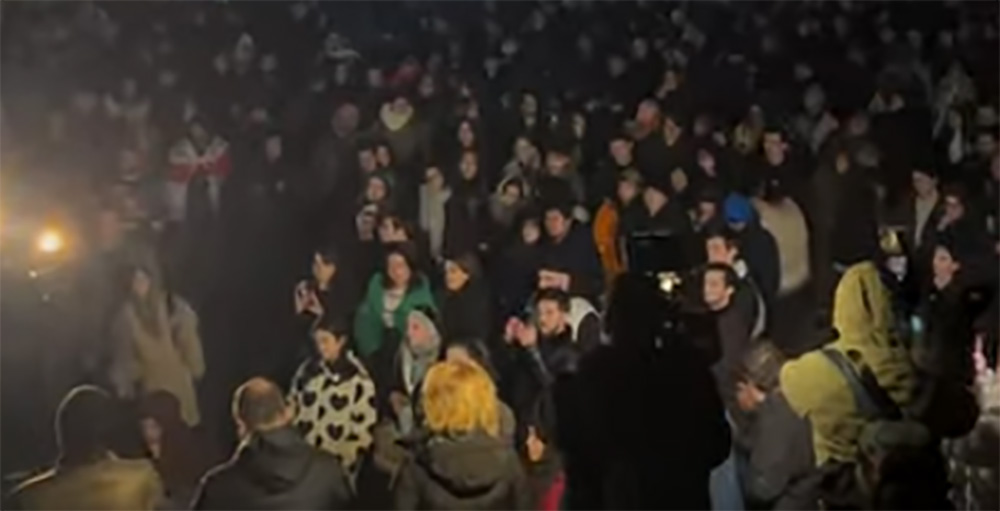 პროტეტის ეპიცენტრი თსუ-ის პირველი კორპუსია, სადაც აკადემიური წრის წარმომადგენლები და სტუდენტები არიან შეკრებილები.
