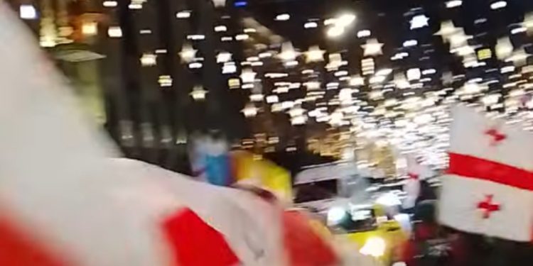 პროტესტის 405-ე დღეს რუსთაველის გამზირზე მოქალაქეები შეიკრიბნენ. როგოეც დაანონსებული იყო, ისინი შობის დღესასწაულს ერთად შეხვდებიან.