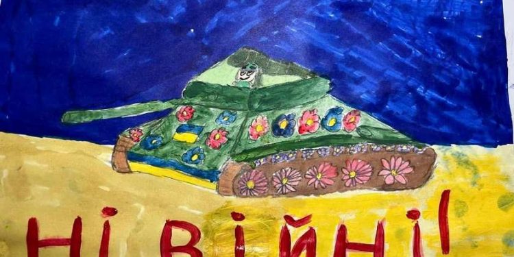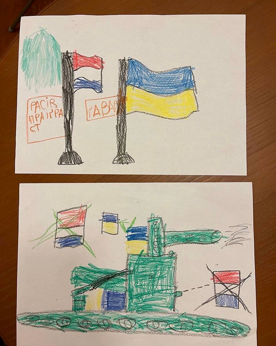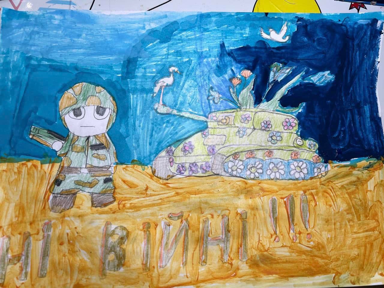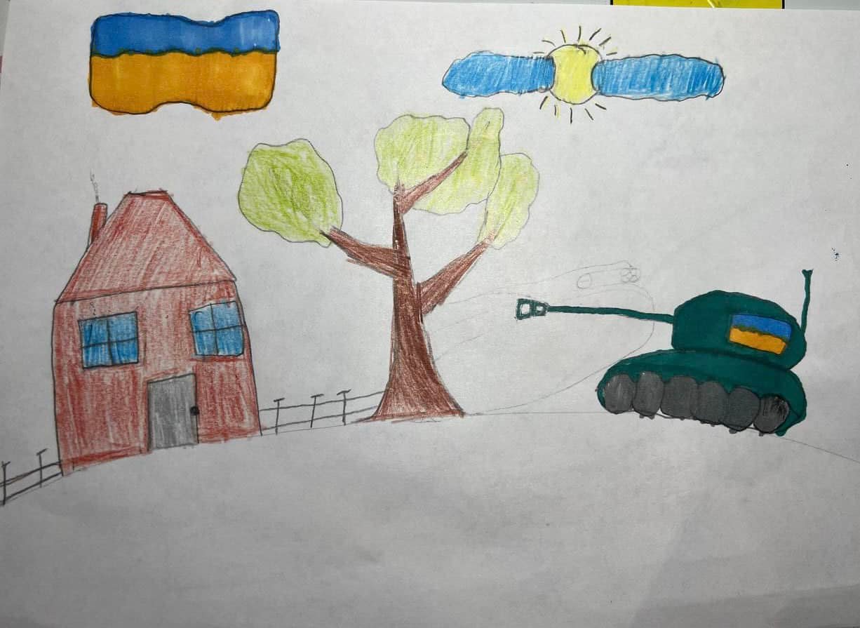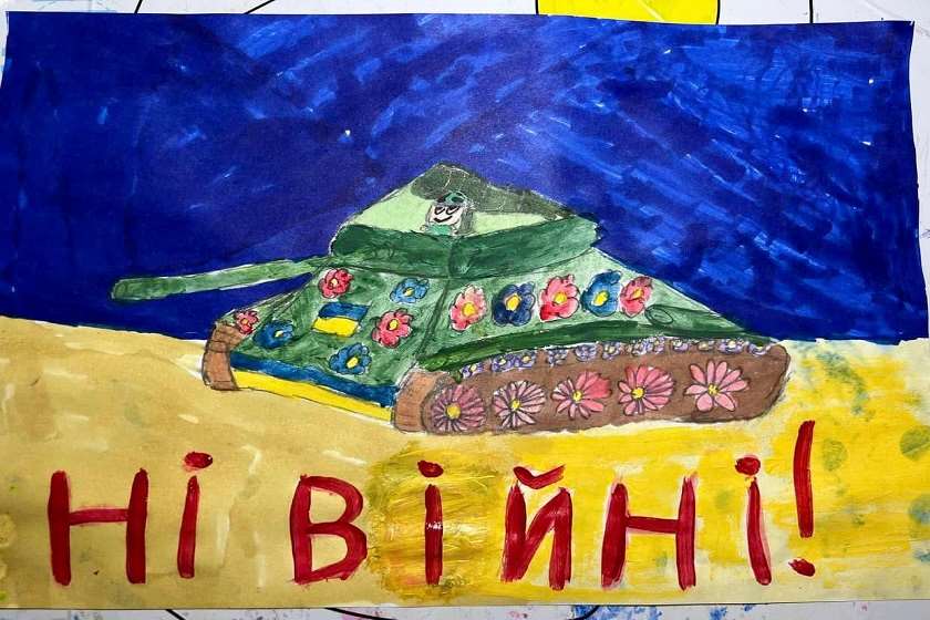 „არა ომს!“, „გამაგრდი უკრაინა!“, „რუსეთი დამარცხდება!“ – ვკითხულობთ ბავშვების ნახატებზე.