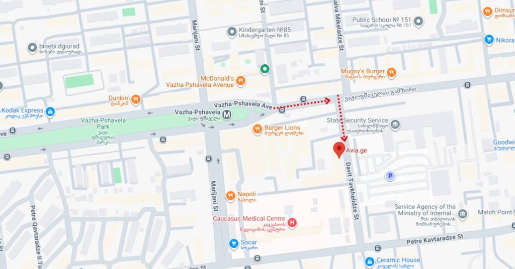 მნიშვნელოვანია აღინიშნოს: გთხოვთ, გაითვალისწინოთ, რომ Avia.ge-ს ყველა წინა ლოკაცია და ოფისი აღარ ფუნქციონირებს. ქვემოთ მოცემული მისამართი ჩვენი ერთადერთი მოქმედი ოფისია ფიზიკური ვიზიტებისთვის.