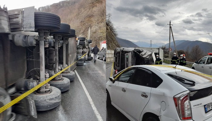 ავტოსაგზაო შემთხვევა მოხდა დუშეთში. თვითმხილველის თქმით, შემთხვევის შედეგად სატვირთო ავტომობილი ამობრუნდა. გავრცელებული ინფორმაციით, ერთი ადამიანი დაშავდა, ხოლო ერთი გარდაიცვალა. წყარო: პრაიმტაიმი