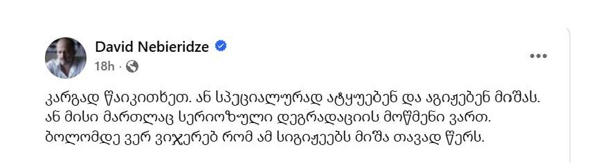 საქართველოს მესამე პრეზიდენტი, მიხეილ სააკაშვილი, სოციალურ ქსელში, წერს: