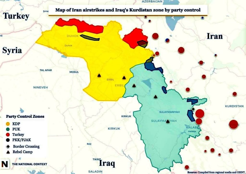 – ამ მომენტისთვის საუბარია იმაზე, რომ ომში ჩაერთვება ირანიდან ერაყში დევნილი 6 პარტიის ალიანსი, მაგრამ მათი ძალები (ქვევით მოტანილ ჩრდილოეთ ერაყის რუკაზე აღნიშნულია ლურჯი ფერით) ძალიან სუსტია (მაქსიმუმ რამდენიმე ათასი), რაც ამ მომენტისთვის ირანისთვის სერიოზულ საფრთხეს არ წარმოადგენს (პირიქით, ომის დაწყების შემდეგ ირანმა დაბომბა ერაყის ქურთისტანში მდებარე მათი ბაზები, რასაც ქურთ მებრძოლებში მსხვერპლიც მოჰყვა);