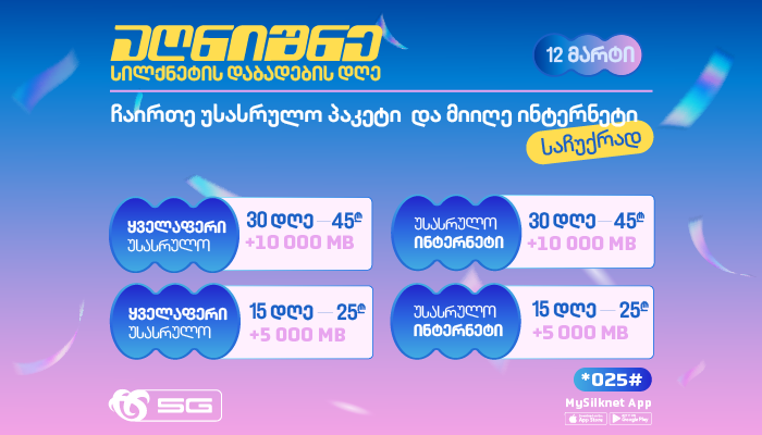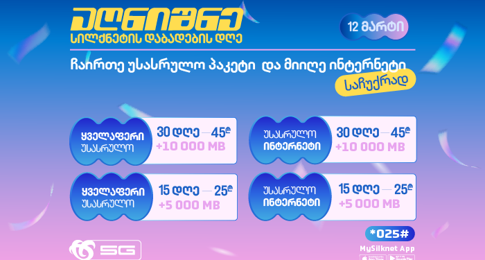 12 მარტი სილქნეტის დაბადების დღეა. კომპანია თავის მომხმარებლებს განსაკუთრებულ აქციებს თავაზობს.