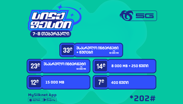 7-8 თებერვალს, სილქფესტი მომხმარებლებს თავაზობს შემდეგი პაკეტების გააქტიურებას: