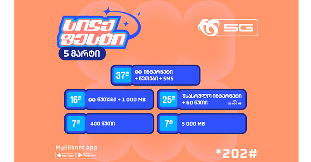 5 მარტის სილქფესტის აქციით, მომხმარებელი შეიძენს ერთ ან მეტ პაკეტს MySilknet აპლიკაციით, ვებ გვერდიდან ან კოდით *202#. ამავე კოდით მომხმარებელი ჩაურთავს რჩეულ პირობას სხვა ნომერსაც.