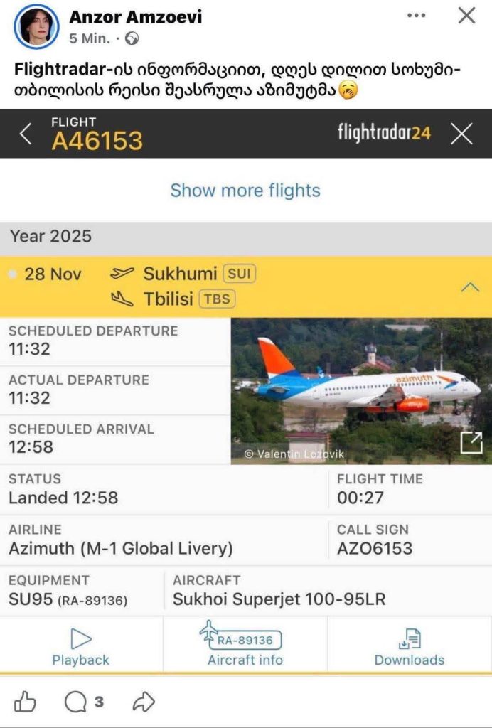 პოლიტიკოსი, ირინა სარიშვილი: <div class="html-div xdj266r x14z9mp xat24cr x1lziwak xexx8yu xyri2b x18d9i69 x1c1uobl"> <div class="html-div xdj266r x14z9mp xat24cr x1lziwak xexx8yu xyri2b x18d9i69 x1c1uobl" dir="auto"> <div class="html-div xdj266r x14z9mp xat24cr x1lziwak xexx8yu xyri2b x18d9i69 x1c1uobl" data-ad-rendering-role="story_message"> <div id="_r_3eq_" class="x1l90r2v x1iorvi4 x1g0dm76 xpdmqnj" data-ad-comet-preview="message" data-ad-preview="message"> <div class="x78zum5 xdt5ytf xz62fqu x16ldp7u"> <div class="xu06os2 x1ok221b"> <div class="html-div xdj266r x14z9mp xat24cr x1lziwak xexx8yu xyri2b x18d9i69 x1c1uobl"> <div class="xdj266r x14z9mp xat24cr x1lziwak x1vvkbs x126k92a"> <blockquote> <div dir="auto"><strong>ინფორმაცია დღევანდელი აქციის მონაწილეებისთვის:</strong></div> <div dir="auto"><strong>Flightradar-ის საიტზე დღეს განთავსებულია ინფორმაცია რომლის თანახმადაც დღეს, 28 ნოემბერს, დილით სოხუმი-თბილისის რეისი შეასრულა აზიმუტმა!!!</strong></div> <div dir="auto"><strong>ვხვდებით ალბათ ეს რასაც ნიშნავს!</strong></div></blockquote> <div dir="auto"><img class="alignnone size-medium wp-image-389671" src="https://www.alia.ge/wp-content/uploads/2025/11/amzoevi-1-692x1024.jpg" alt="" width="692" height="1024" /></div> </div> </div> </div> </div> </div> </div> </div> <div id="_r_3er_" class="html-div xdj266r x14z9mp xat24cr x1lziwak xexx8yu xyri2b x18d9i69 x1c1uobl x1n2onr6"> <div class="html-div xdj266r x14z9mp xat24cr x1lziwak xexx8yu xyri2b x18d9i69 x1c1uobl x1n2onr6"></div> <div class="html-div xdj266r x14z9mp xat24cr x1lziwak xexx8yu xyri2b x18d9i69 x1c1uobl x6ikm8r x10wlt62"></div> </div> </div> <div> <div class="xabvvm4 xeyy32k x1ia1hqs x1a2w583 x6ikm8r x10wlt62" data-visualcompletion="ignore-dynamic"> <div> <div> <div> <div class="x1n2onr6"> <div class="x6s0dn4 xi81zsa x78zum5 x6prxxf x13a6bvl xvq8zen xdj266r xat24cr x1c1uobl xyri2b x1diwwjn xbmvrgn x1yrsyyn x18d9i69"> <div class="x6s0dn4 x78zum5 x1iyjqo2 x6ikm8r x10wlt62"><span id="_r_3et_" class="x6s0dn4 x78zum5 x135b78x"></span> <div class="x6ikm8r x10wlt62"> <div class="x1i10hfl xjbqb8w x1ejq31n x18oe1m7 x1sy0etr xstzfhl x972fbf x10w94by x1qhh985 x14e42zd x9f619 x1ypdohk x3ct3a4 xdj266r x14z9mp xat24cr x1lziwak xexx8yu xyri2b x18d9i69 x1c1uobl x16tdsg8 x1hl2dhg xggy1nq x1fmog5m xu25z0z x140muxe xo1y3bh x1n2onr6 x87ps6o x1lku1pv x1a2a7pz x1heor9g xnl1qt8 x6ikm8r x10wlt62 x1vjfegm x78zum5" tabindex="0" role="button"></div> </div> </div> <div class="x9f619 x1ja2u2z x78zum5 x2lah0s x1n2onr6 x1qughib x1qjc9v5 xozqiw3 x1q0g3np xyri2b x1c1uobl x1ws5yxj xw01apr x4cne27 xifccgj x123j3cw xs9asl8"></div> </div> </div> </div> </div> </div> </div> </div>