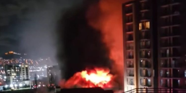 ამ წუთებში, თბილისში, დიდ დიღომში ძლიერი ხანძარია, ცეცხლი სასაწყობე ფართს უკიდია.