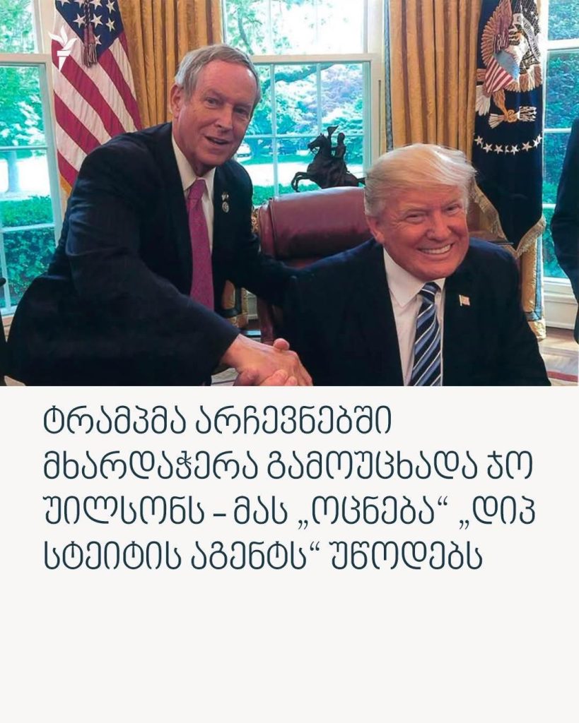 ,,… და არა მარტო “ დიპ სტეიტის აგენტს” ვუწოდებთ… ის არის მიშას დედა გიულას მიერ დაქირავებული რუპორი, 1000$_ იანი პოსტების მჯღაბნელი, კორუმპირებული და მექრთამე იდიოტი და რაც მთავარია- ამერიკის სირცხვილი და თავის მოჭრა!