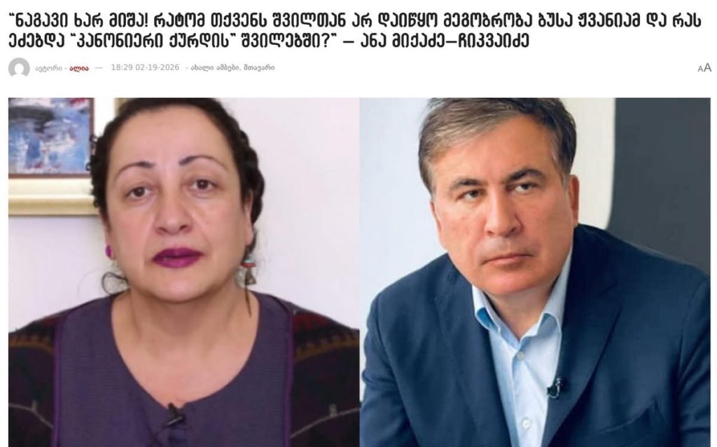 მიხეილ სააკაშვილის მხარდამჭერი, მაია ორჯონიკიძე სოციალურ ქსელში ,,ალიაში” გამოქვეყნებული ნიუსის ფოტოს აქვეყნებს და წერს: