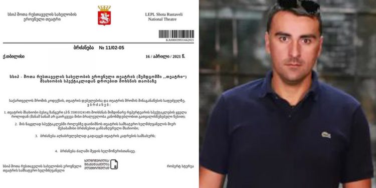 მსახიობი, ბესო ზანგური, სოციალურ ქსელში, აქვეყნებს რუსთაველის თეატრის ბრძანების ფოტოს და წერს: