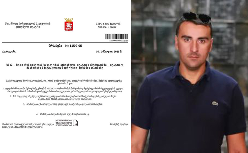 მსახიობი, ბესო ზანგური, სოციალურ ქსელში, აქვეყნებს რუსთაველის თეატრის ბრძანების ფოტოს და წერს: