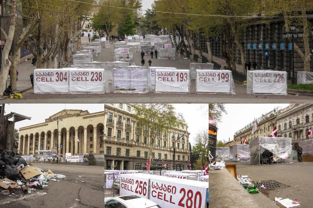 ეს თბილისია, ნაცების დროს საკნებით გადაკეტილი, შარდის და ფეკალიის, ნაგვის და ხრწნის სუნად აყროლებული თბილისი. სამი თვე ! დღე და ღამე ! 24 საათი ასე, ამ მეთოდით იყო გადაკეტილი რუსთაველი (ხალხი არ ყოფნიდა სხვანაირად ქუჩის გადაკეტვას)
