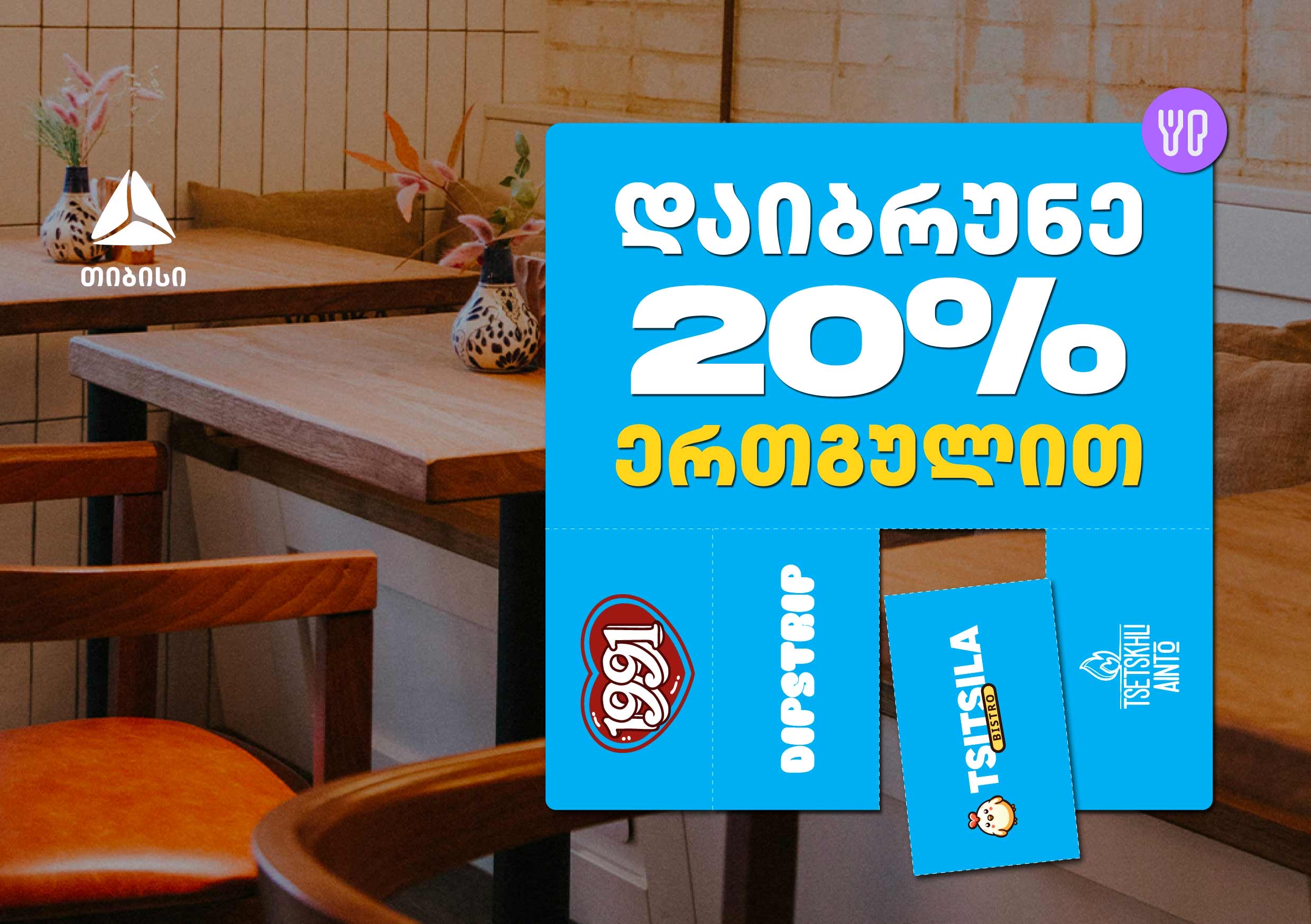 გადაიხადე ერთგული ბარათით შერჩეულ კვების ობიექტებში და დაიბრუნე თანხის 20% ულიმიტოდ