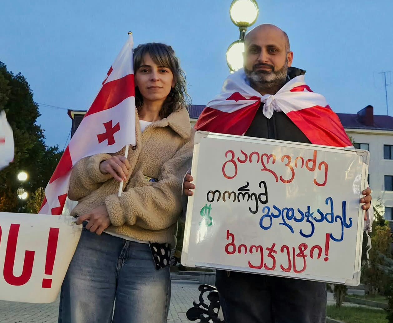 „გაიღვიძე, თორემ გადაჭამეს ბიუჯეტი!“ – დღევანდელი გზავნილი ახალციხის უწყვეტი პროტესტიდან.