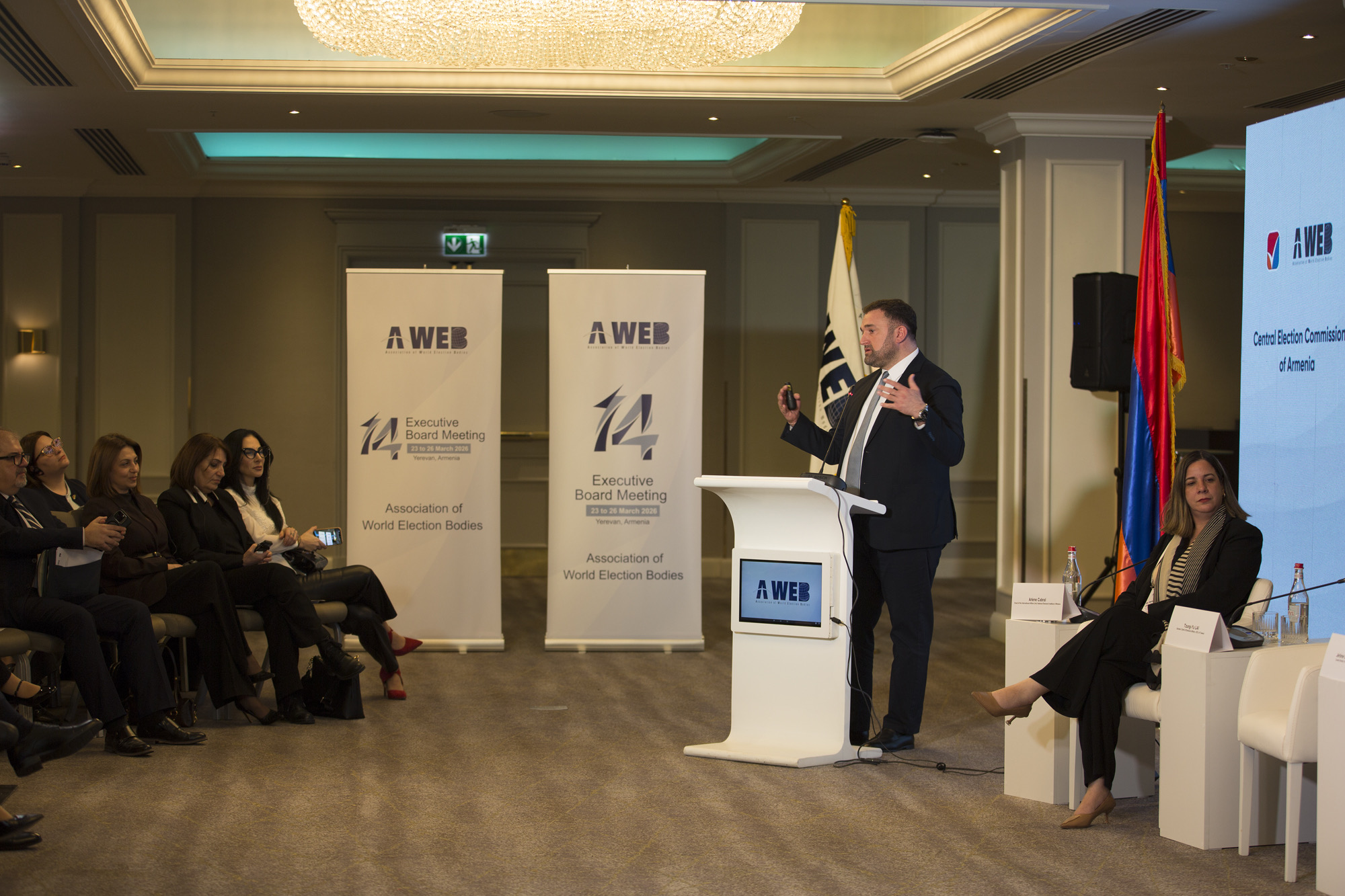 საერთაშორისო კონფერენცია სომხეთის ცენტრალური საარჩევნო კომისიის ორგანიზებით ერევანში გაიმართადა მასში საარჩევნო ორგანოების მსოფლიო ასოციაციის (A-WEB) აღმასრულებელი საბჭოს წევრი ქვეყნების, ასევე სხვადასხვა ქვეყნის საარჩევნო ადმინისტრაციებისა და საერთაშორისო ორგანიზაციების წარმომადგენლები და ექსპერტები მონაწილეობდნენ. კონფერენციას საქართველოს საარჩევნო ადმინისტრაციიდან ცესკოს თავმჯდომარესთან ერთად კომისიის მდივანი გიორგი ჯავახიშვილი და წევრები გიორგი ძაგანია და არჩილ ანასაშვილი დაესწრნენ. მათ აქტიური მონაწილეობა მიიღეს პანელურ დისკუსიაში სესიაზე „შესაძლებლობების განვითარება და ინსტიტუციური თანამშრომლობა“, სადაც გიორგი კალანდარიშვილმა,როგორც მთავარმა მომხსენებელმა, პრეზენტაცია წარადგინა და საარჩევნო სისტემების გაძლიერებაში საერთაშორისო თანამშრომლობის მნიშვნელოვან როლზე ისაუბრა.