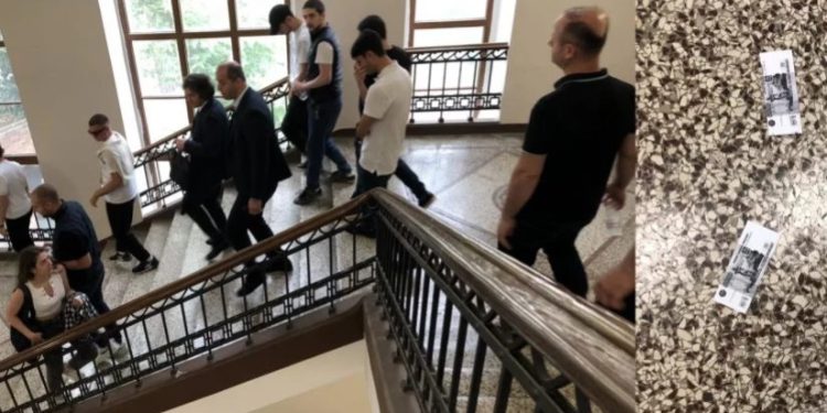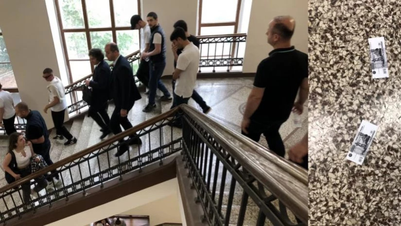 თსუ-ის მეორე კორპუსში, სადაც “ქართული ოცნების” თავმჯდომარე კობახიძე კონსტიტუციის შესახებ ლექციას კითხულობდა, რამდენიმე სტუდენტმა პროტესტის ნიშნად, ლექციის დასრულების შემდეგ მას რუსული რუბლები კიბეზე ჩასვლისას გადაუყარა.