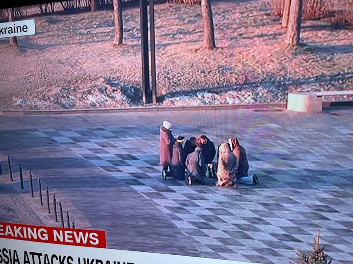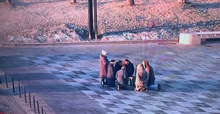 კადრები ხარკოვის ცენტრიდან – მუხლებზე დაჩოქილი, მლოცველი მოხუცები