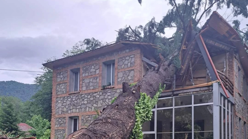 ძლიერი ქარის შედეგად მოგლეჯილმა ხეებმა დააზიანა საქართველო-აზერბაიჯანის საზღვარზე მდგომი, მსუბუქი ავტომობილებით დატვირთული