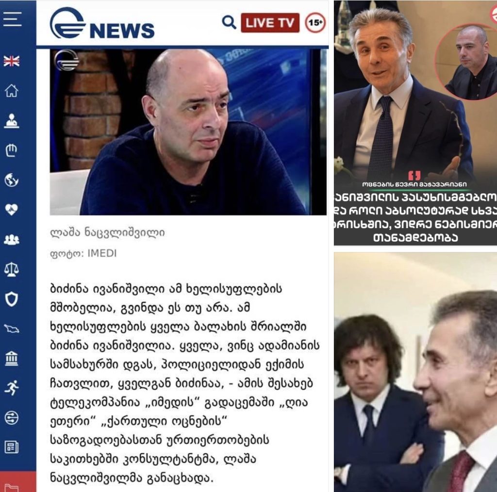 ლაშა ნაცვლიშვილისთვის “იმედზე”, 6 წლის წინ უფრო მხატვრულად გაიგებდა ამ ამბავს: “ბიძინა ივანიშვილი ხელისუფლებაში ყველას მშობელია… ის არის ხელისუფლების ყველა ბალახის შრიალში… ყველგან—