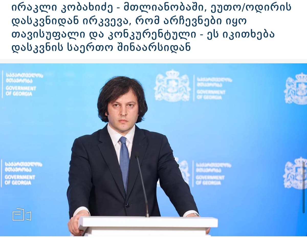 პ.ს. მიუხედავად იმისა, რომ ასეთი არაფერია ნახსენები დასკვნაში, კობახიძემ ასეთი შინაარსი გამოიტანა (თანდართულია ფოტო). კარგად ჩანს, ვის აქვს პრობლემა წაკითხულიდან შინაარსის გამოტანის, კობახიძეს თუ საზოგადოებას.”
