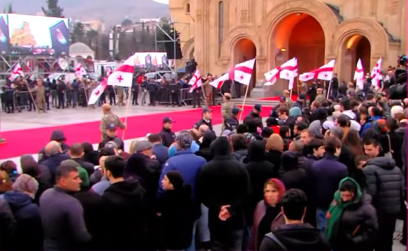 მანამდე მრევლი ტაძრის ეზოში იყო შეკრებილი და ღვთისმსახურებას გარე ეკრანებიდან ადევნებდა თვალს.
