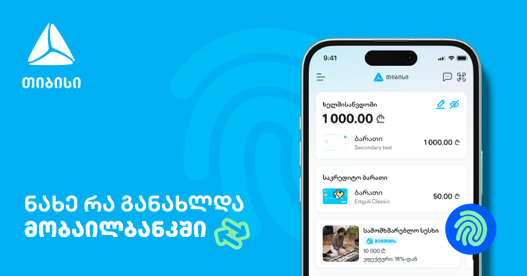 ჩვენ ვუმარტივებთ ადამიანებს ცხოვრებას, ვამარტივებთ თქვენს ყოველდღიურობასმობილბანკის ახალი ფუნქციონალებით, რომელსაც განსხვავებულ სიმაღლეზე აჰყავს ციფრული საბანკო ურთიერთობები.