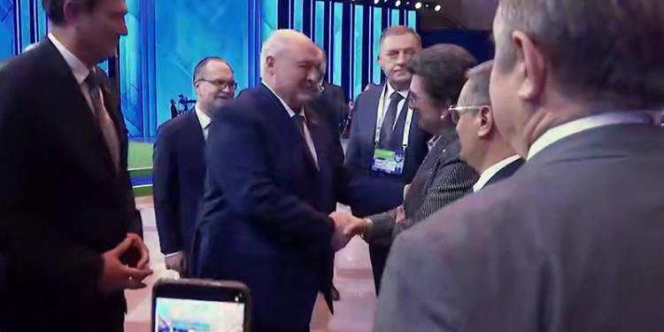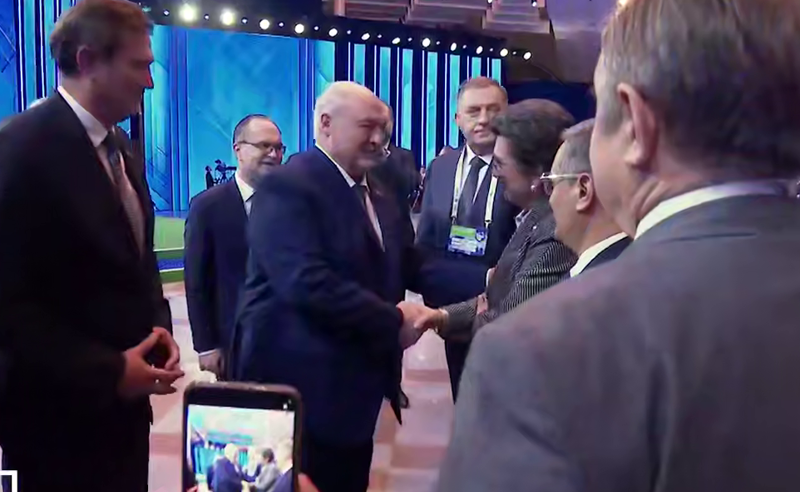 ნინო ბურჯანაძე მინსკში ევრაზიის უსაფრთხოების საერთაშორისო კონფერენციას ესწრებოდა, სადაც ბელარუსის პრეზიდენტს, ალექსანდრე ლუკაშენკოს შეხვდა – ვიდეო, რომელსაც რუსული ტელეგრამ არხი ავრცელებს, ჩანს, როგორ ართმევს ხელს ბურჯანაძე ლუკაშენკოს.