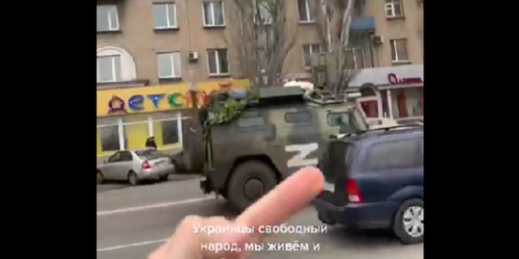 რუსი სამხედროების მიერ ოკუპირებულ მელიტოპოლში სამხედრო ტექნიკა გადაადგილდება, რომელიც ხმის გამაძლიერებლებით მოსახლეობას მიტინგების და დემონსტრაციების აკრძალვის შესახებ რუსულ ენაზე  ატყობინებს. ვიდეომტკიცებულებებს ადგილობრივი მოსახლეობა ავრცელებს.