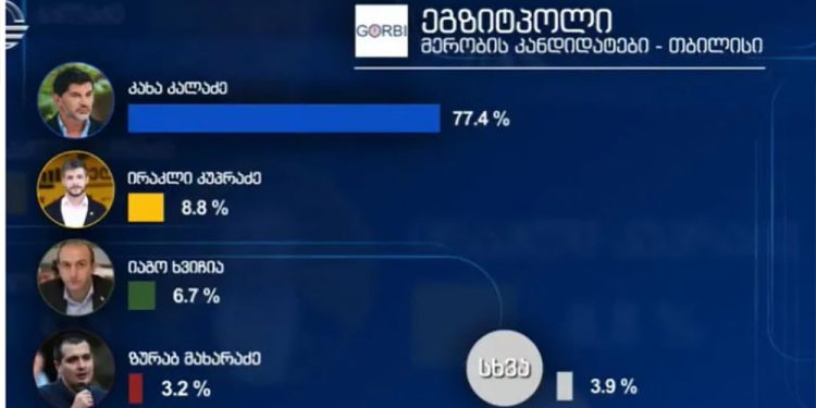 რაც შეეხება თბილისის მერობის კანდიდატებს, იმედის ეგზიტპოლების მიხედვით, „ქართული ოცნების“ კანდიდატმა, კახა კალაძემ ხმების 77.4% მიიღო, „გახარია საქართველოსთვის“ და „ლელო-ძლიერი საქართველოს“ საერთო კანდიდატმა, ირაკლი კუპრაძემ ხმების 8.8% მიიღო, იაგო ხვიჩიამ 6.7%, ხოლო ზურაბ მახარაძემ 3,2%.