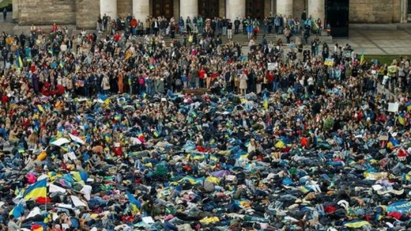ვარშავაში 4000-მა უკრაინელმა და პოლონელმა, რუსეთის აგრესიისა და სისასტიკის შედეგი აჩვენეს მსოფლიოს! მათ კულტურის სახლის წინ 4000 უდანაშაულო გარდაცვლილი ადამიანი განასახიერეს!