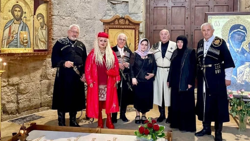 ფოტოშოფი არ გეგონოთ, რეალობაა. ეს წითლებში შემოსილი ქალი ქუთაისში მცხოვრები თეთრიწყაროელი თამარ ბაგრატაშვილია, რომელმაც გვარი გადაიკეთა ბაგრატიონად და სულელ უვიცებს დააჯერა, რომ მეფე ერეკლეს შთამომავალია ვითომ და დედოფლობს იქ . აწგარდაცვლილი უვიცი მეუფე კალისტრატეც ხელს უწყობდა მის ამბიციებს საუბედუროდ და მის საფლავზე პოზიორობენ “თავად-აზნაურნი” და ეს ტყაჭა თვითმარქვია “პრინცესა”:)) საქართველოს გარდა სხვაგან ასეთი სამარცხვინო რამ ხდებოდეს, მე არა მგონია და ვერ წარმომიდგენია.