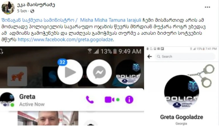 ეკა მაისურაძე ამბობს, რომ სოციალურ ქსელში სხვადასხვა პირები მას წერენ, რომ ბრალდებული პოლიციელების ფოტოების შესახებ პოსტი წაშალოს, თორემ საფრთხე დაემუქრება.