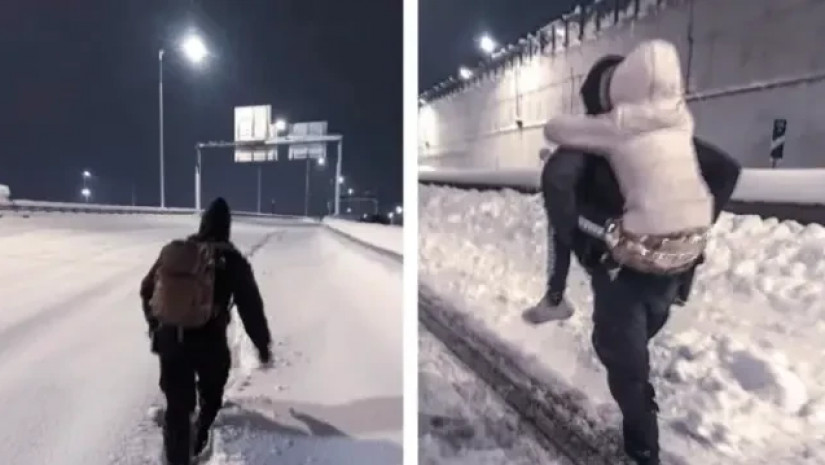 ფოტოზე გამოსახულია პოლიციელი და ზურგზე შემოსმული პატარა გოგონა, რომელიც, გუშინ მამასთან ერთად საავადმყოფოში ოპერაციის გასაკეთებლად მიდიოდა რა დროსაც, თოვლის გამო ატიკის მაგისტრალზე ჩარჩნენ.