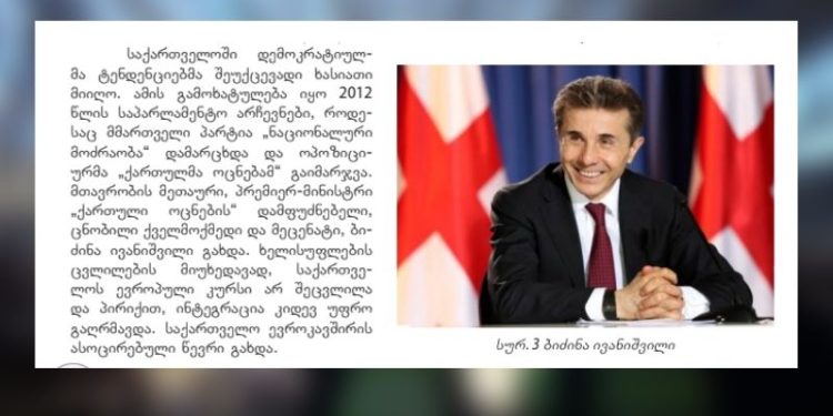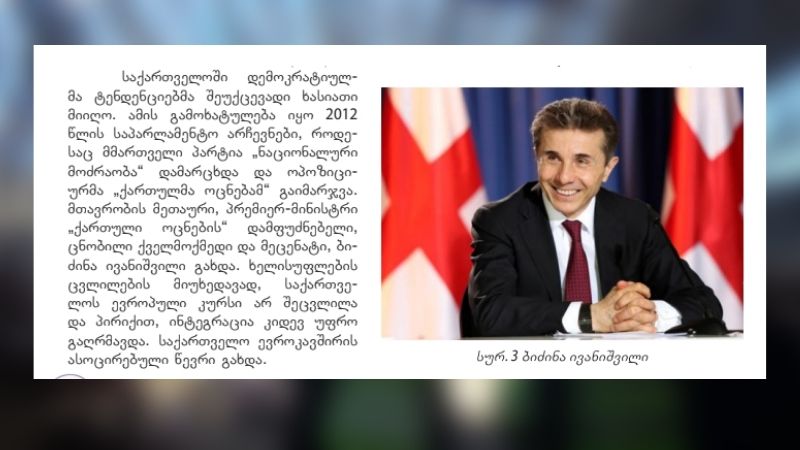 ისტორიის სახელმძღვანელოში ასვე აღნიშნულია, რომ 2012 წელს „ხელისუფლების ცვლილების მიუხედავად, საქართველოს ევროპული კურსი არ შეცვლილა და პირიქით, ინტეგრაცია კიდევ უფრო გაღრმავდა. საქართველო ევროკავშირის ასოცირებული წევრი გახდა“.