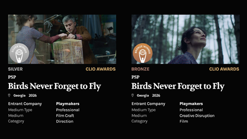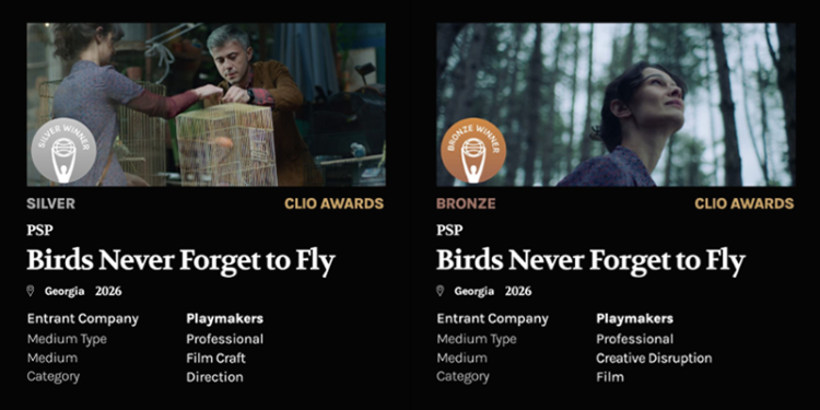 PSP-ს დამოუკიდებლობის დღისადმი (2025) მიძღვნილმა კამპანიამ „ჩიტებს ფრენა არ ავიწყდებათ“ მსოფლიოს პრესტიჟულ შემოქმედებით დაჯილდოვებზე CLIO Awards 2 ჯილდო მოიპოვა:ვერცხლი – Film Direction -და ბრინჯაო – Creative Disruption.