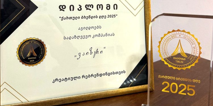 სადაზღვევო კომპანია “ვაიზერი” კრეატიული რებრენდინგისთვის დაჯილდოვდა. “ქართული ბრენდის დღე 2025″ ტრადიციულად დეკემბრის ბოლოს წარმატებულ ქართულ ბრენდებს აჯილდოვებს წლის განმავლობაში მიღწეული წარმატებებისთვის.