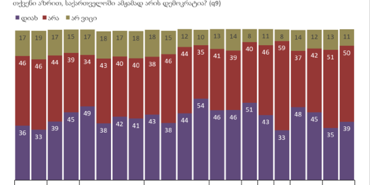 საქართველოში ყოველი მეორე მოქალაქე ამბობს, რომ ქვეყანაში ამჟამად დემოკრატია არ არის – კვლევა ეროვნულ-დემოკრატიული ინსტიტუტმა (NDI) რამდენიმე წუთის წინ გამოაქვეყნა: