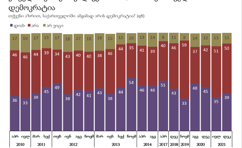 საქართველოში ყოველი მეორე მოქალაქე ამბობს, რომ ქვეყანაში ამჟამად დემოკრატია არ არის – კვლევა ეროვნულ-დემოკრატიული ინსტიტუტმა (NDI) რამდენიმე წუთის წინ გამოაქვეყნა: