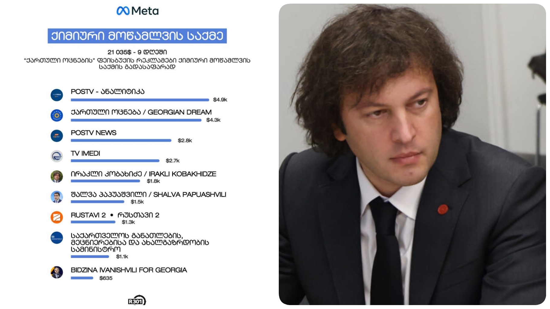 META-ს პოლიტიკური რეკლამების ბიბლიოთეკის თანახმად, 2025 წლის 1-დან 7 დეკემბრის ჩათვლით, ფეისბუქ პოსტების პოლიტიკურ რეკლამაზე $100-ზე მეტი „ქართული ოცნების“ პარტიულმა გვერდებმა, სამთავრობო უწყებებმა და პარტიის მხარდამჭერი სარედაქციო პოლიტიკის მქონე ტელევიზიებმა დახარჯეს.