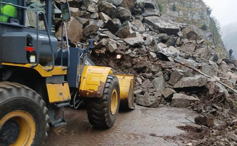 სოფელ ბარჯაშთან, ქვების სახით ჩამოსულმა მეწყერმა გზა ჩახერგა, ჩამოწოლილი მასა დიდია, ადგილზე კი მხოლოდ ერთი ექსევატორი მუშაობს.