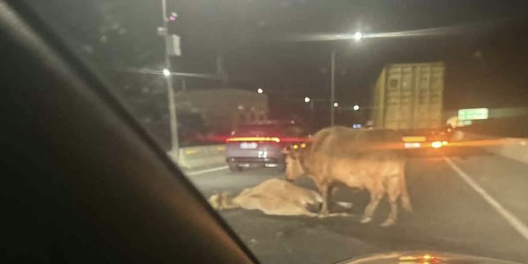 მაგისტრალზე ძროხების პრობლემა ხშირადაა, რაც აშკარად ვერ მოაგვარა შესაბამისმა სამსახურმა.