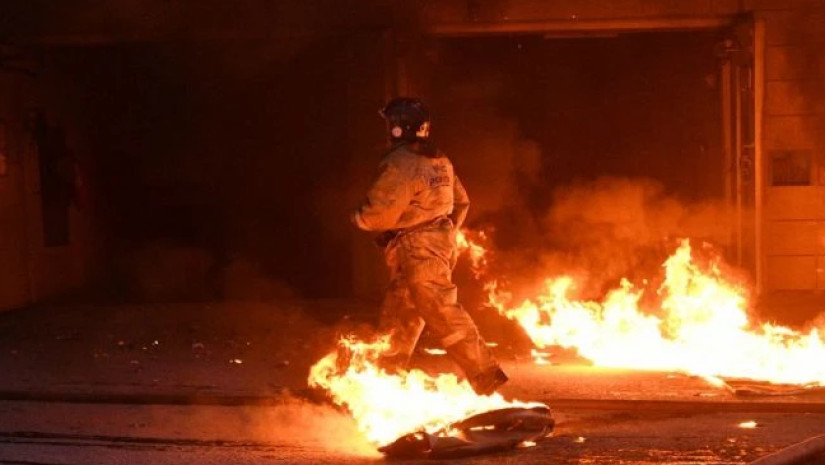 ცეცხლის ჩაქრობას ართულებს შენობის საპროექტო მახასიათბლები და სახურავის ჩანგრევა.