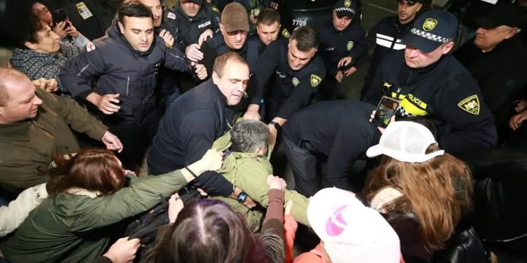 რუსთაველის გამზირზე მიმდინარე საპროტესტო აქციაზე პოლიციამ აქციის მონაწილეები ძალის გამოყენებით დააკავა.