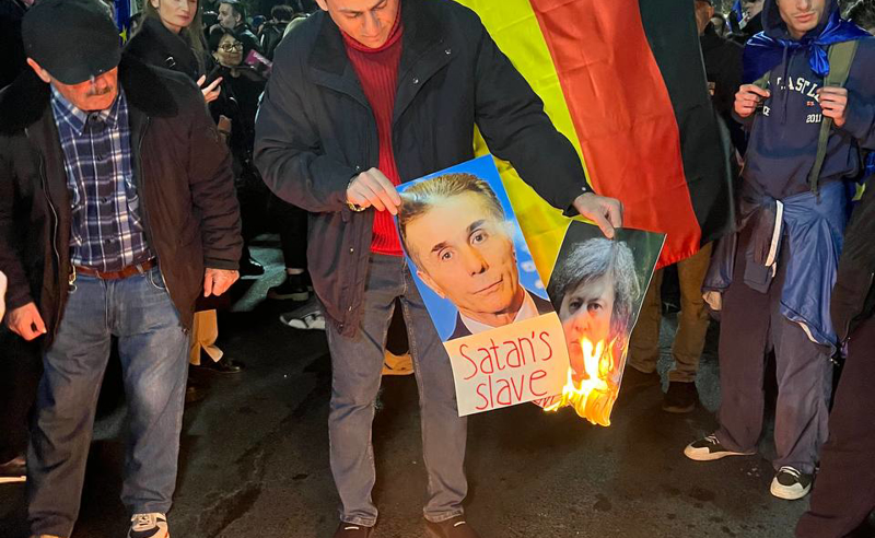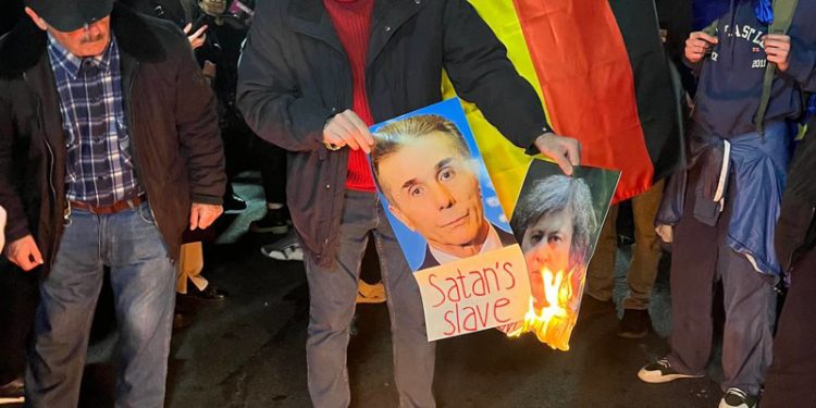 მოქალაქეებმა რუსთაველის გამზირზე ბიძინა ივანიშვილისა და ირაკლი კობახიძის ფოტოები დაწვეს.